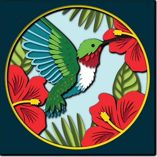 This 13 layer, 3D design is available in an 8 x 8 frame (actual frame measures just under 9" square). Prefer a different color scheme? Just shoot me an email describing what you're looking for!